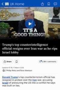 Readers were invited to see Kent’s words as a serious, insider indictment of both the war against Iran and President Donald Trump’s administration itself.